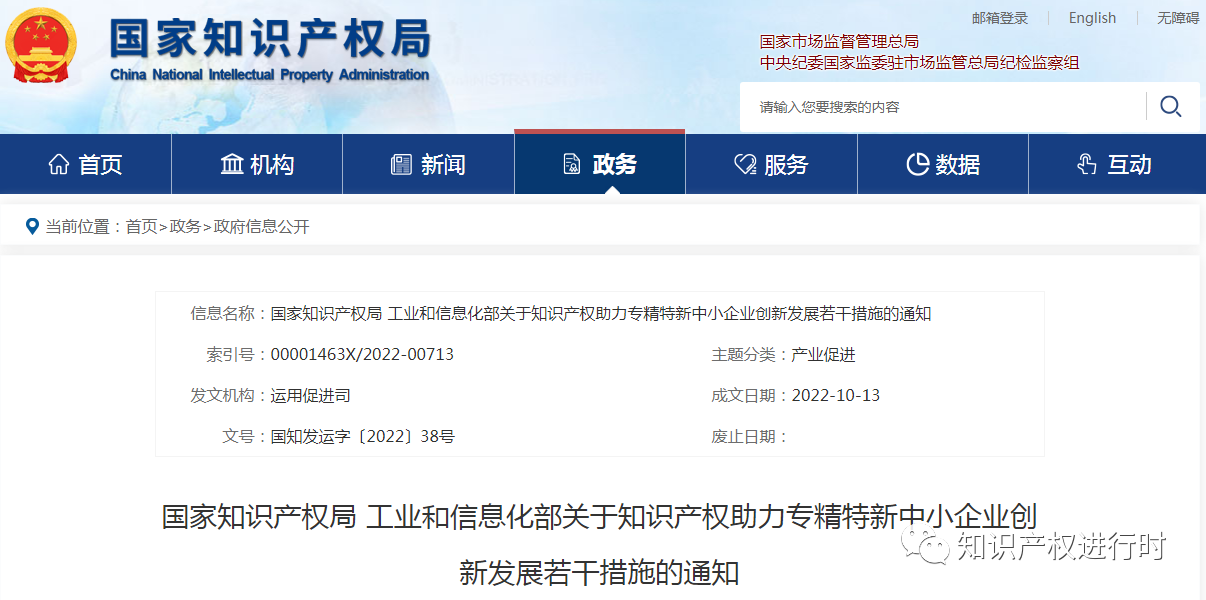國家知識產(chǎn)權(quán)局 工業(yè)和信息化部關于知識產(chǎn)權(quán)助力專精特新中小企業(yè)創(chuàng)新發(fā)展若干措施的通知