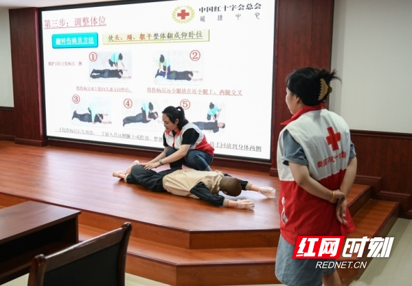 本次培訓(xùn)分為理論知識講解和實際操作兩個環(huán)節(jié),特邀婁底職業(yè)技術(shù)學(xué)院醫(yī)學(xué)部臨床醫(yī)學(xué)院院長譚芳主講。譚芳對心肺復(fù)蘇、氣道梗塞急救法和AED機使用、海姆立克急救法,災(zāi)害事故、意外傷害逃生避險、常見急癥的現(xiàn)場救護原則等進行了詳細的講解。