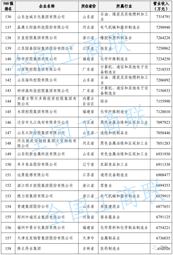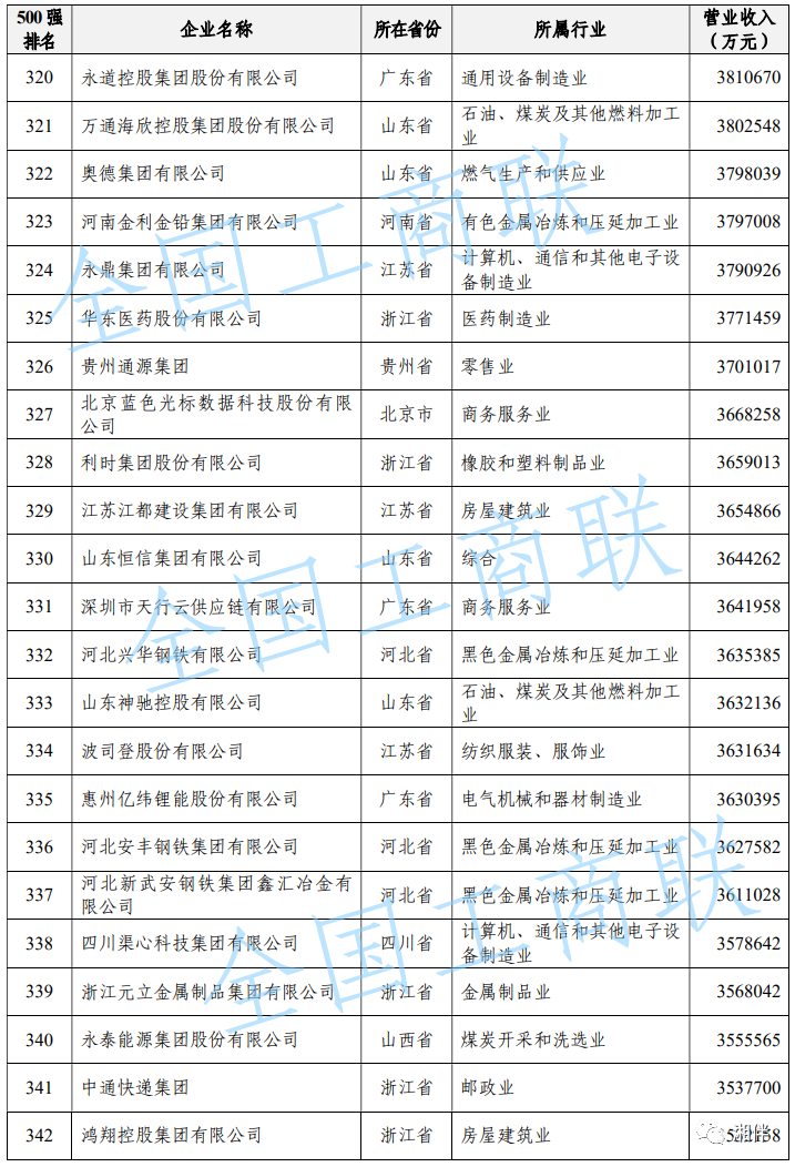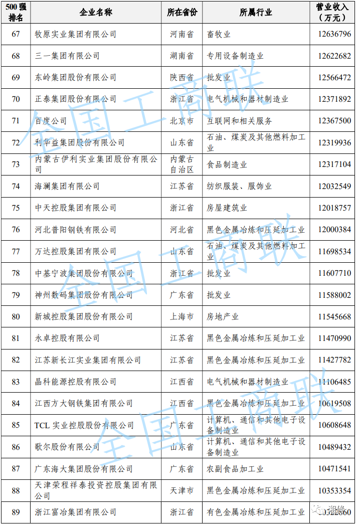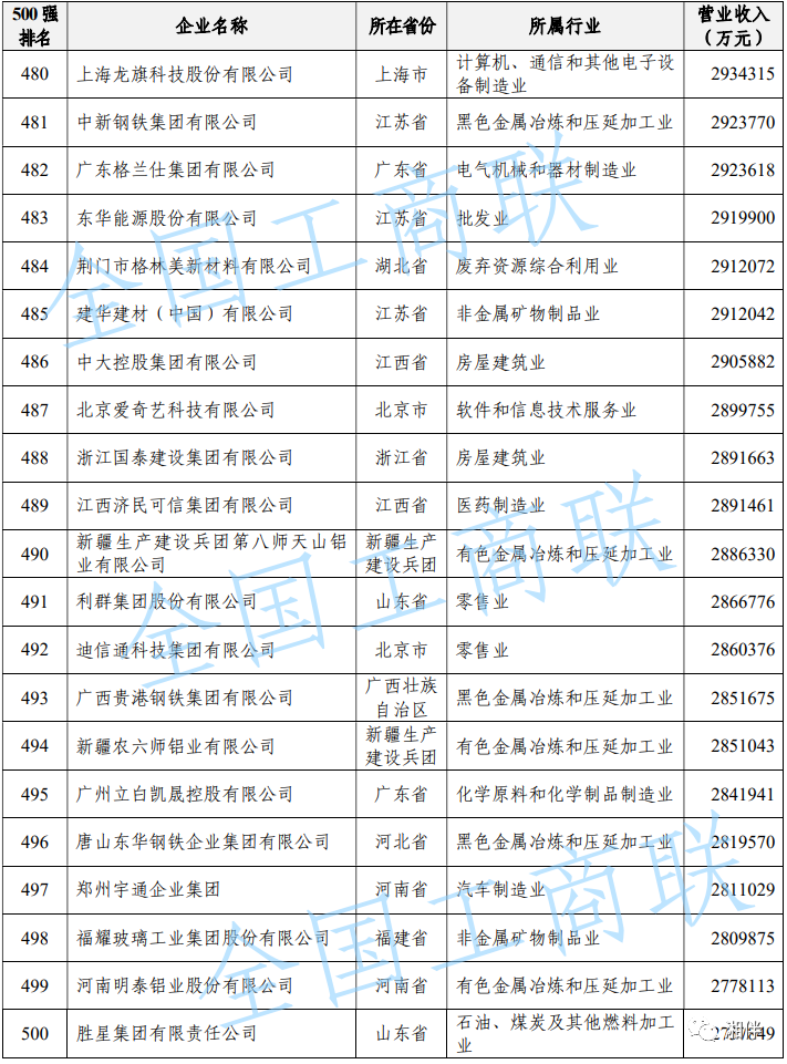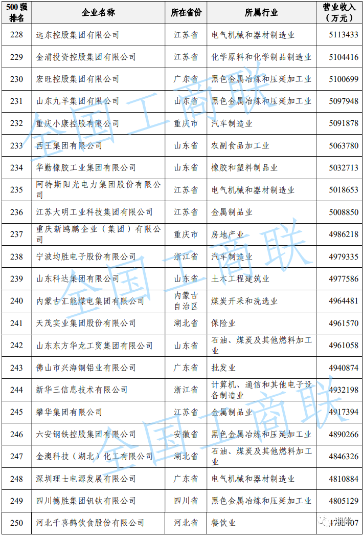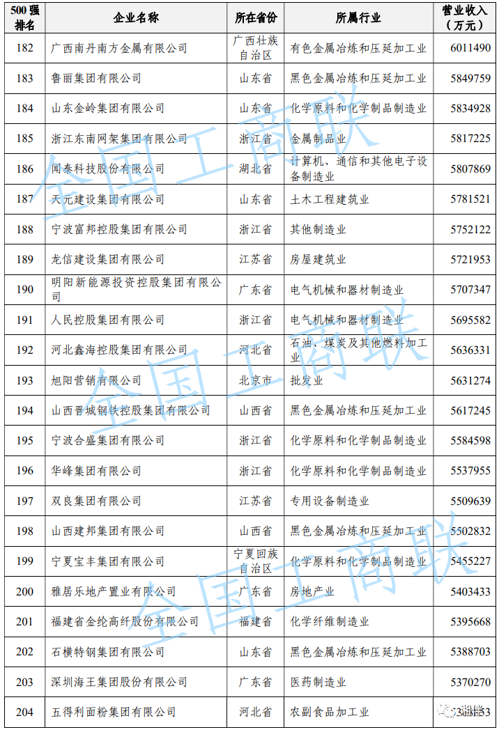 2023中國民營企業(yè)500強(qiáng)榜單