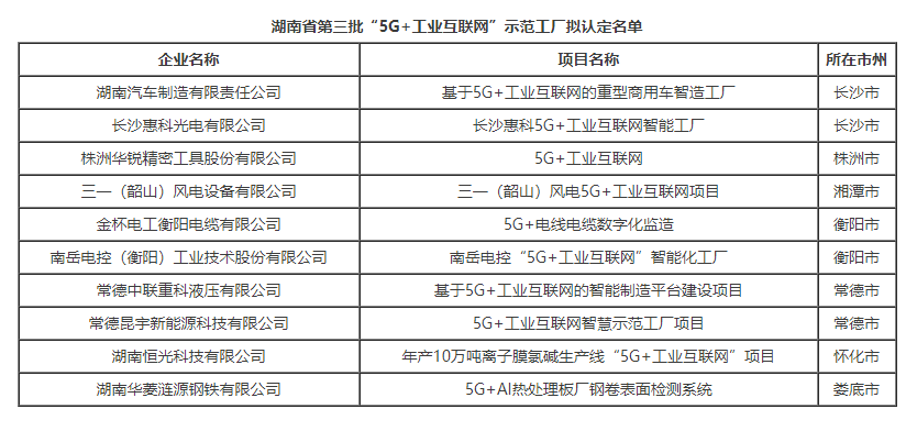 關(guān)于湖南省第三批“5G+工業(yè)互聯(lián)網(wǎng)”示范工廠擬認定名單的公示