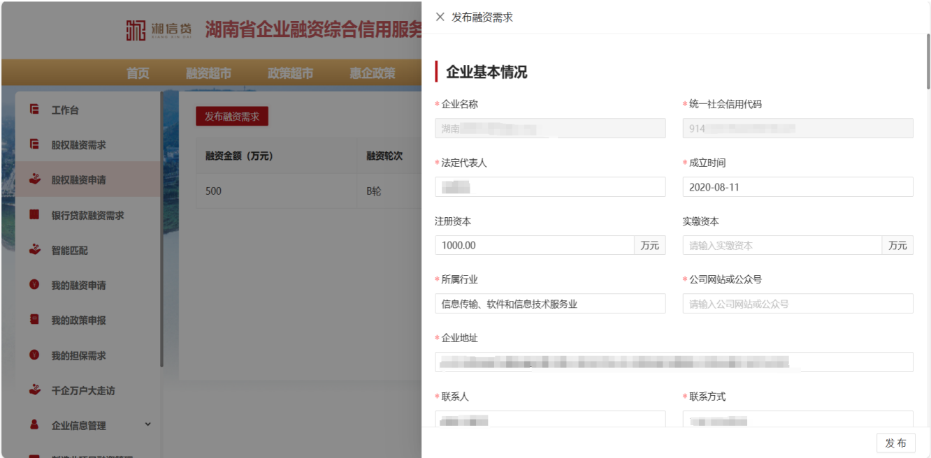 “湘信貸”平臺股權融資需求提交操作指引